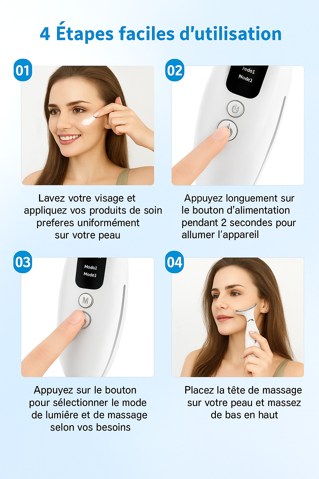 La technologie de massage et de chaleur stimule la circulation et aide à lisser les rides. Votre peau retrouve souplesse et éclat naturellement.